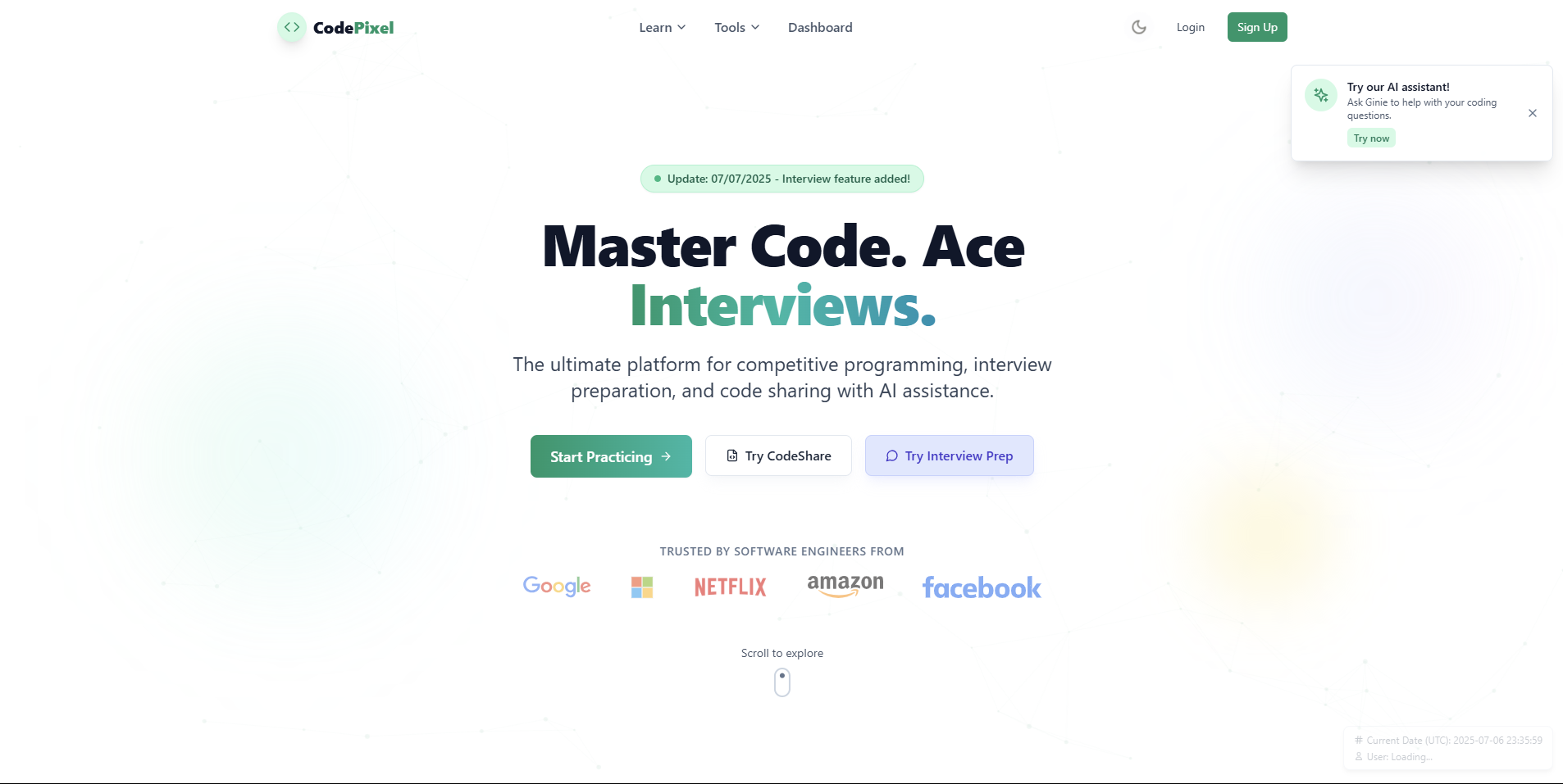 CodePixel is the ultimate platform for competitive programming, interview preparation, and code sharing with AI assistance.
