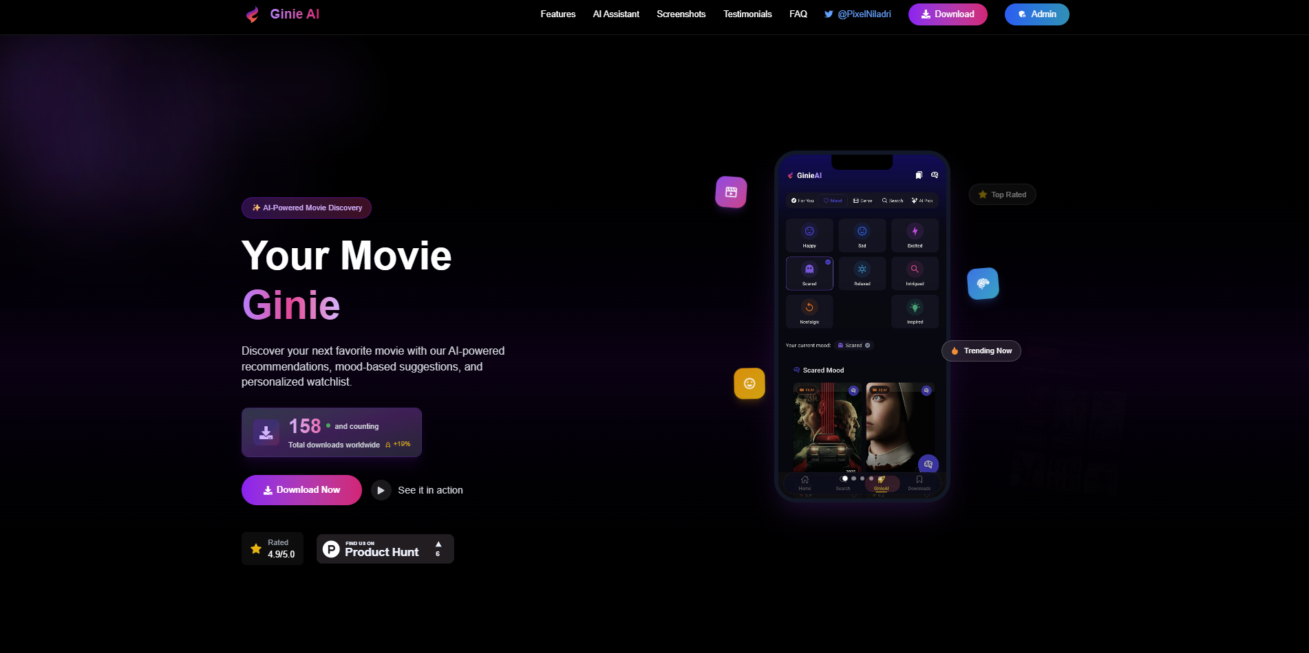 Ginie is an intelligent Android application that revolutionizes how you discover and interact with movies and TV shows. Powered by our custom-trained Ginie AI model built on Llama 3.5, it offers unprecedented search capabilities and personalized recommendations.